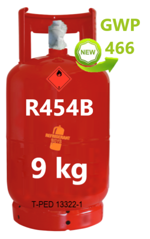 366,00€ PREZZO IVA ESCLUSAGas refrigerante R454C in bombola ricaricabile da 9 kg approvata T-PED / EN 13322-1 Valvola W 21,7 x 1/14″ SX UN 3163