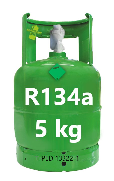 Gas refrigerante R134a in bombola ricaricabile approvata T-PED / EN 13322-1 da 5 kg Valvola 1/4″ SAE) UN 3159