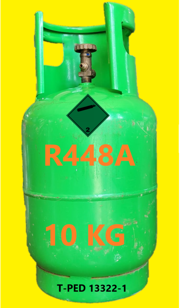 Gas refrigerante R448A en cilindros rellenable RECONDITIONADA 10 kg Aprobada T-PED / EN 13322-1 Válvula 1/4″ SAE UN 3163