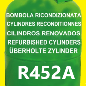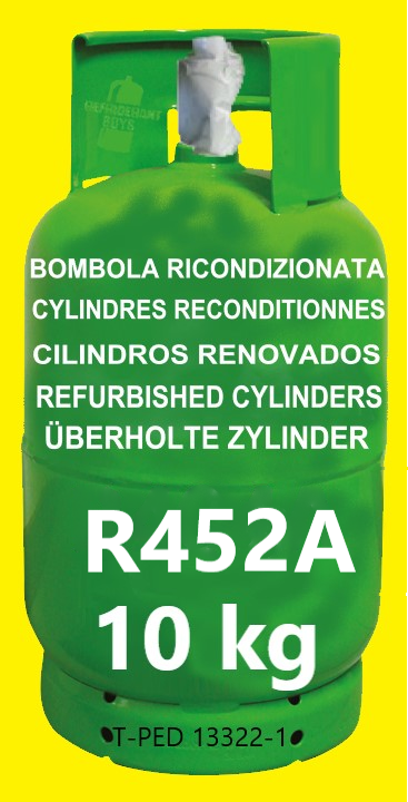 Gas refrigerante R452A en cilindros rellenable RECONDITIONADA 10 kg Aprobación T-PED / EN 13322-1 Válvula 1/4″ SAE UN 1078